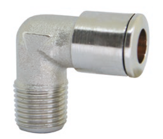 Коленчатый штуцер с наружной трубной (BSPT) резьбой никелированный.